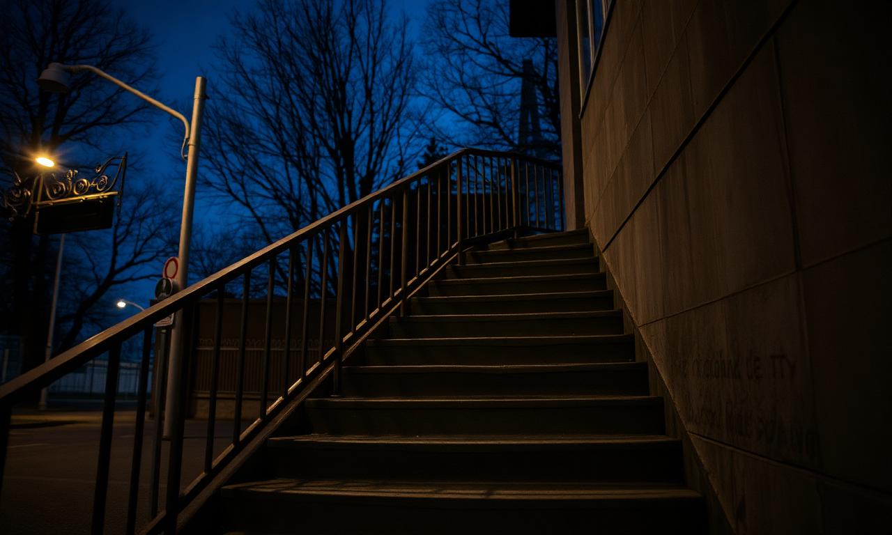 Dark parking lots, stairwells, and walkways enabling falls and assaults.